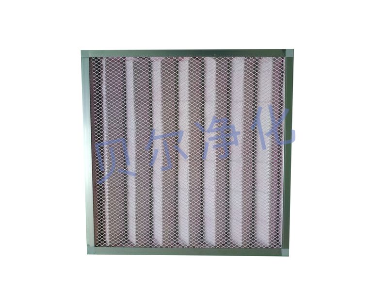 在工業(yè)潔凈環(huán)境和建筑物潔凈環(huán)境中應(yīng)用廣泛和用量大的過濾器品種,其過濾效率為G4,是粗效過濾段中常見的一種,具有過濾面積大、容塵量大,低阻力等優(yōu)點。